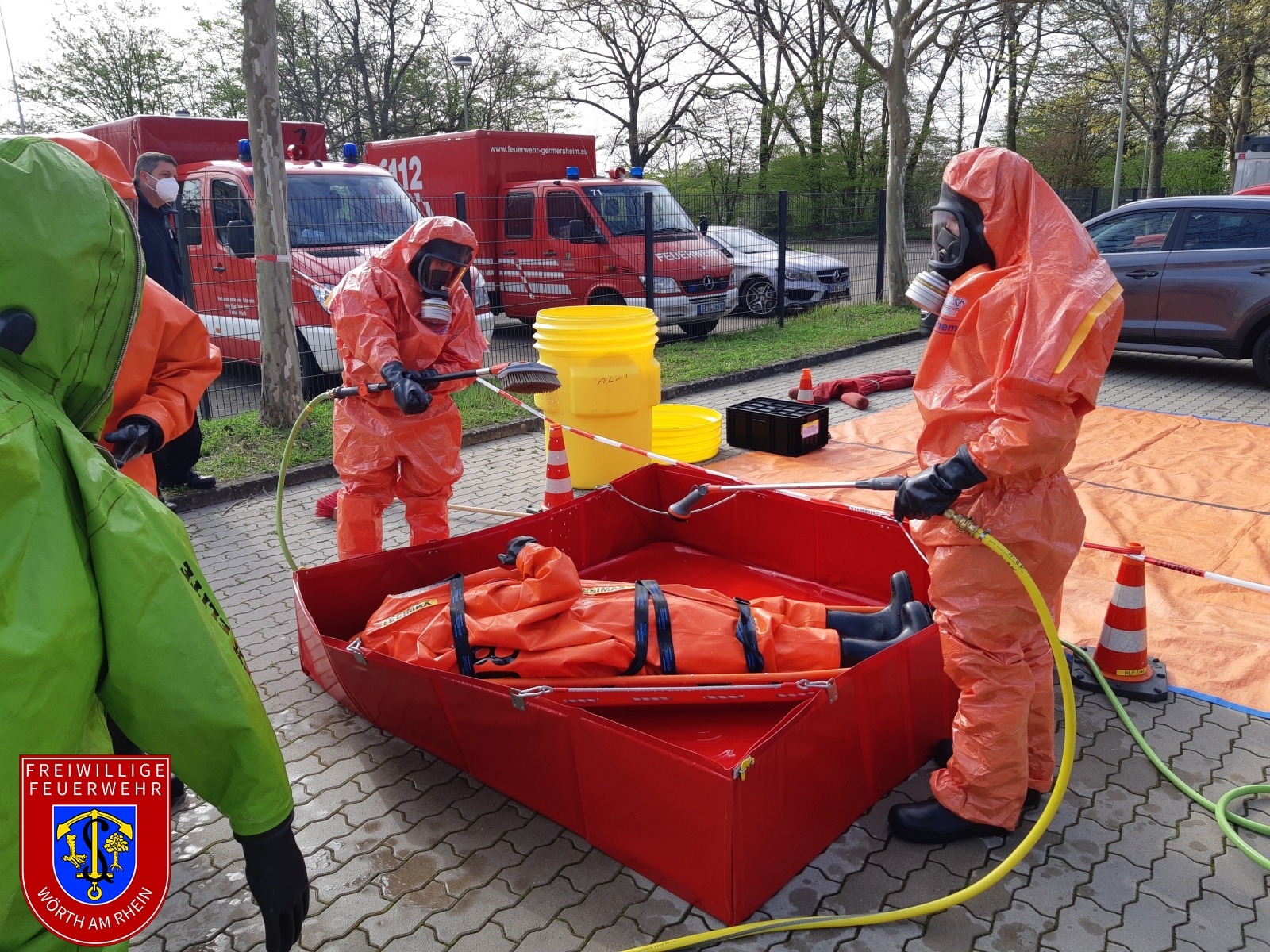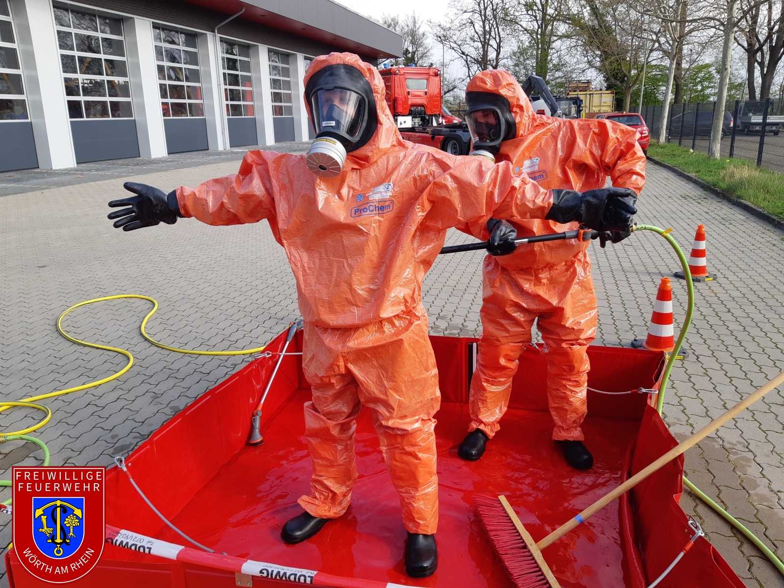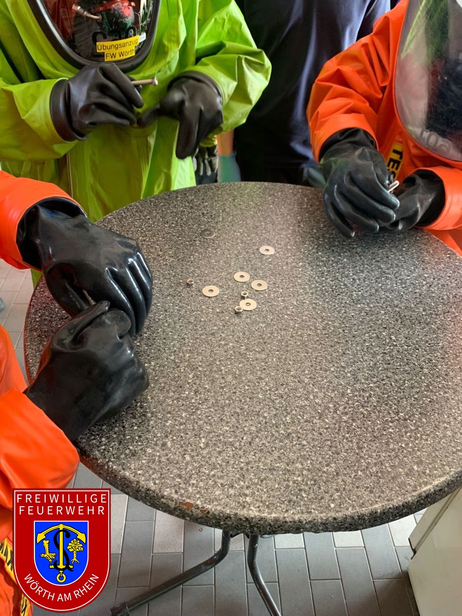 An den ersten beiden Aprilwochenenden fand bei uns in Wörth der Lehrgang „Chemikalienschutzanzugträger“ des Landkreises Germersheim statt. Dieser wurde in einem Hybridmodell, also teilweise online und teilweise in unserem Gerätehaus in Wörth durchgeführt. Das Lehrgangsziel ist, dass sich die Kameraden an das Tragen eines Chemikalienschutzanzugs (CSA) gewöhnen. Damit verbunden sind erschwerte Einsatzbedingungen wie die erhöhte körperliche Belastung beim Ausführen von Arbeiten.