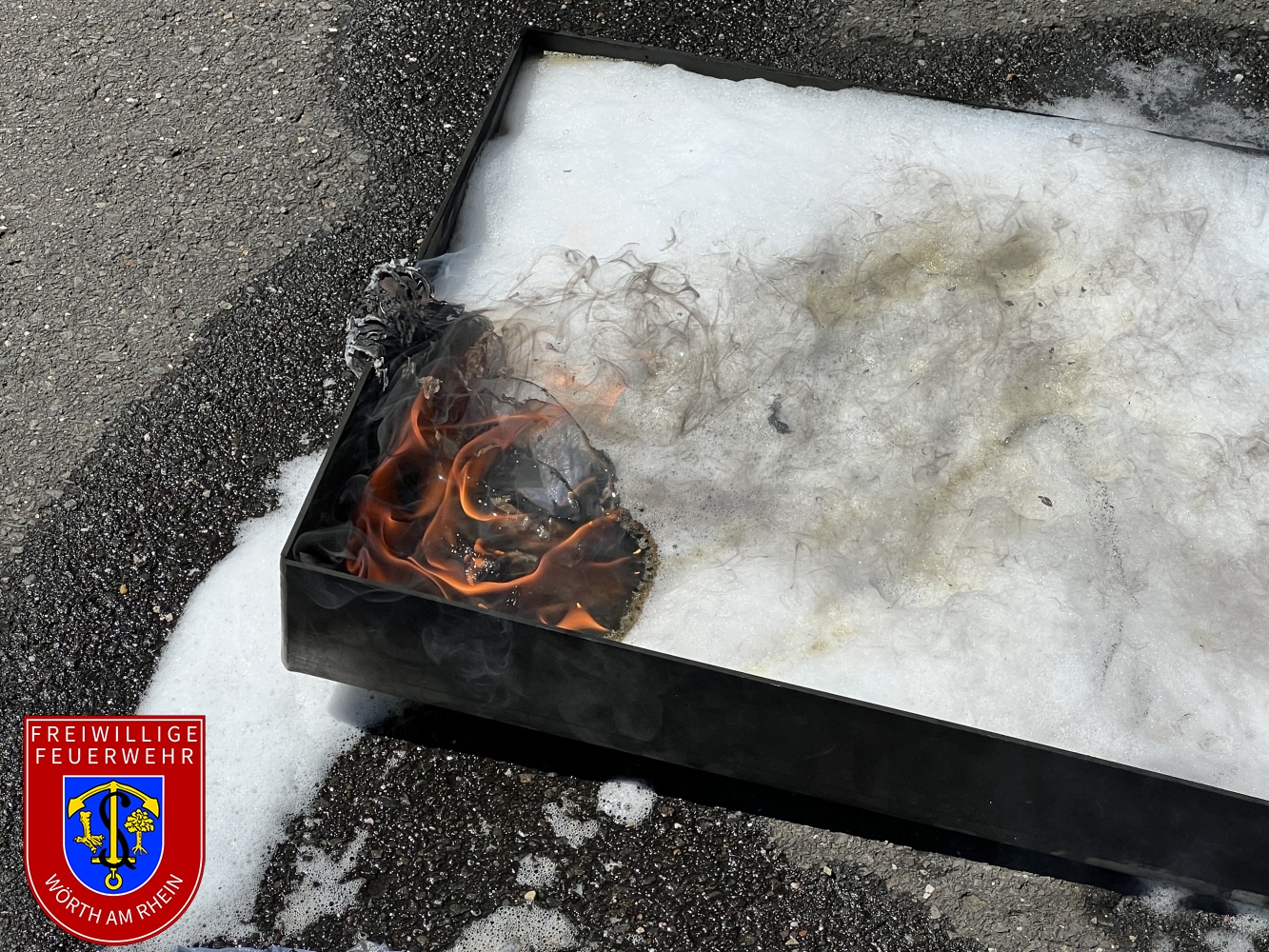 Auch an diesem Wochenende stand wieder ein wichtiger Ausbildungstermin für Einsatzkräfte innerhalb der Stadt Wörth am Rhein an. Thema dieses Seminars war der effektive Einsatz von Löschschaum als Löschmittel bei der Brandbekämpfung. Der Aufbau der eintägigen Lehrveranstaltung folgte dem üblichen Ablauf mit theoretischer Einführung und anschließender praktischen Umsetzung.