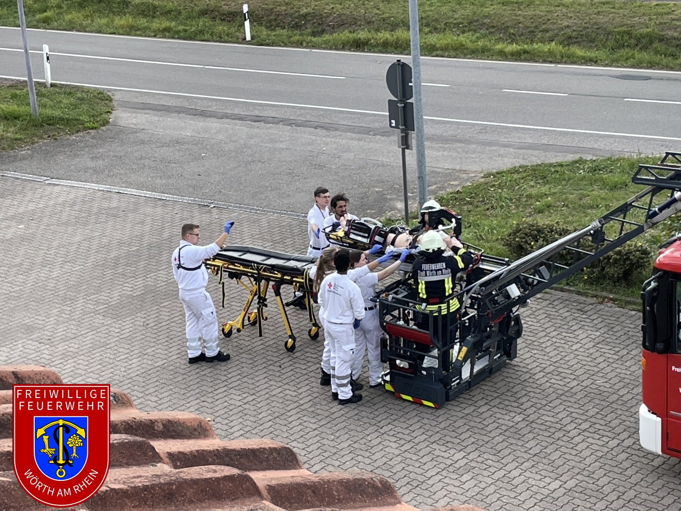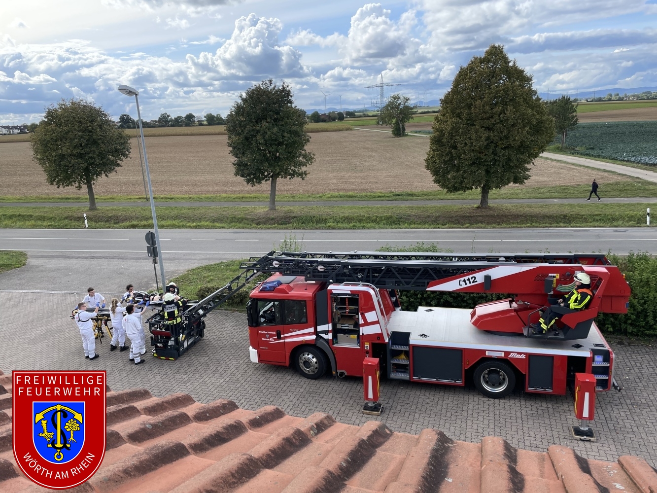 Am Samstagmorgen unterstützten wir mit unserer Drehleiter bei einer Ausbildungsveranstaltung für Notfallsanitäter-Azubis. Dabei handelte es sich um eine Veranstaltung für die Angehörigen aller Ausbildungsjahrgänge. Die Zusammenarbeit erfolgte gemeinsam mit den Kameraden der Freiwilligen Feuerwehr Kandel am dortigen Standort.