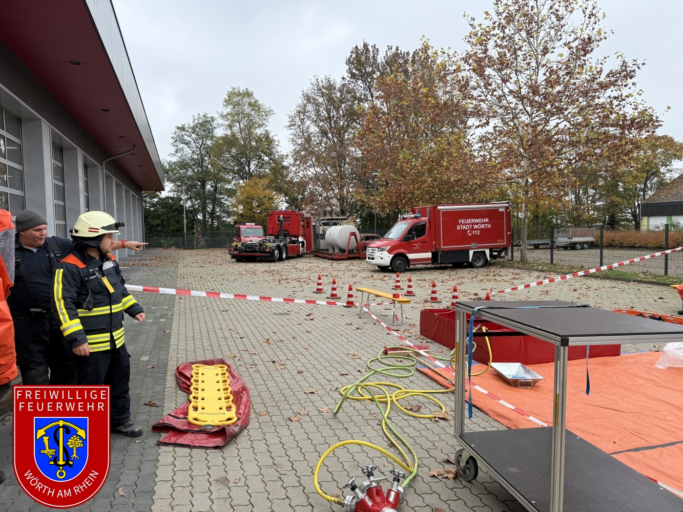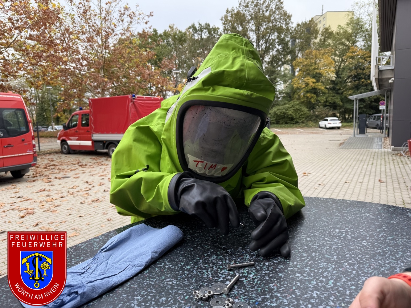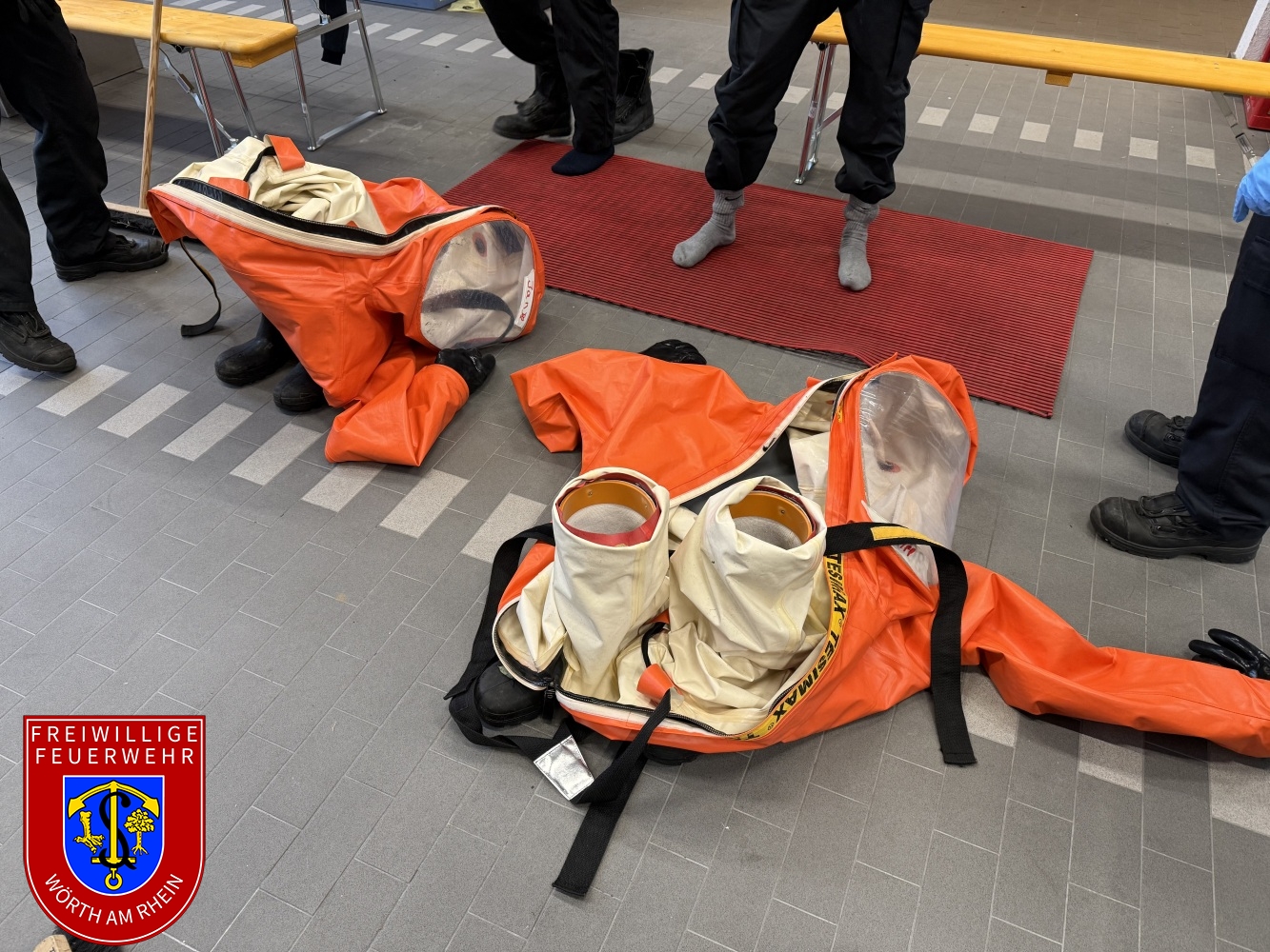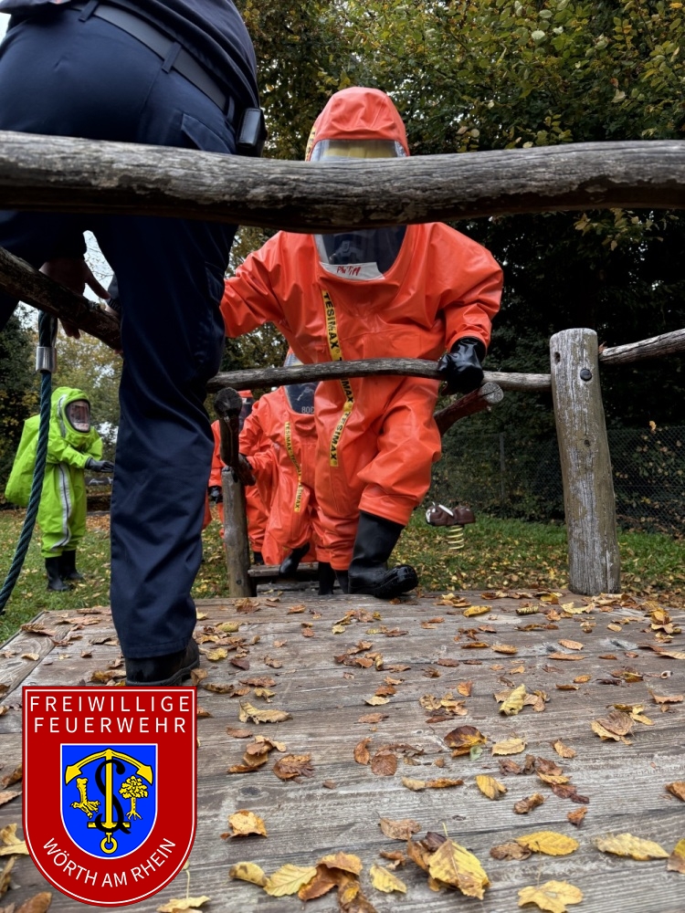 An den letzten beiden Wochenenden fand bei uns in Wörth der Lehrgang zum Tragen von Chemikalienschutzanzügen (CSA) des Landkreises Germersheim statt. Dieser wurde erneut in einem Hybridmodell, also teilweise online und teilweise in unserem Gerätehaus als Präsenzveranstaltung durchgeführt. Das Lehrgangsziel ist, dass sich die Kameraden an das Tragen eines CSA gewöhnen. Damit verbunden sind erschwerte Einsatzbedingungen wie eine erhöhte körperliche Belastung beim Ausführen von Arbeiten.