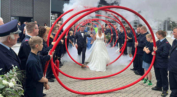 Heute gaben sich unser Wehrführer Alexander und seine Frau Jennifer im Rahmen einer freien Trauung im Feuerwehrgerätehaus das Eheversprechen. Wir haben es uns nicht nehmen lassen dem Brautpaar zu gratulieren. Jenny und Alex, wir wünschen euch viele Jahrzehnte Glück, Gesundheit und immer ein Lächeln am Ende des Tages.