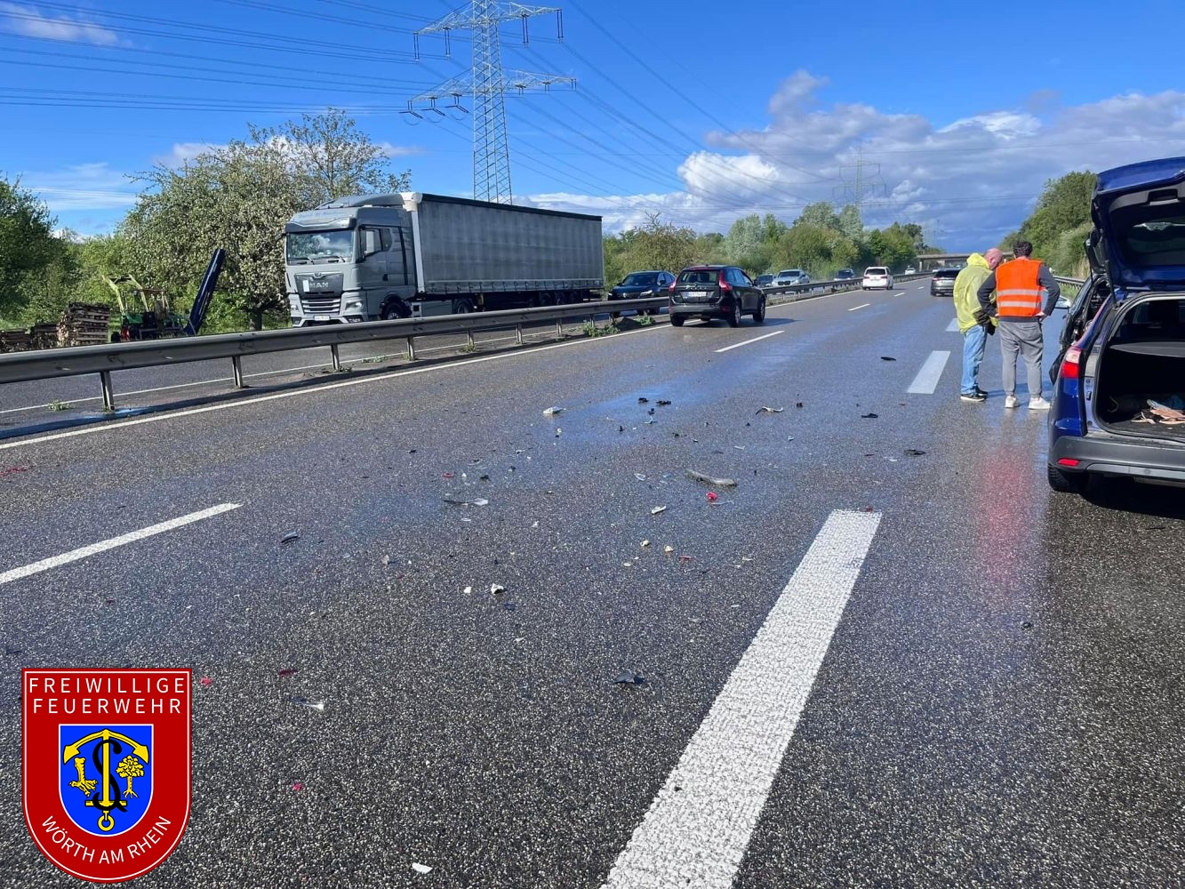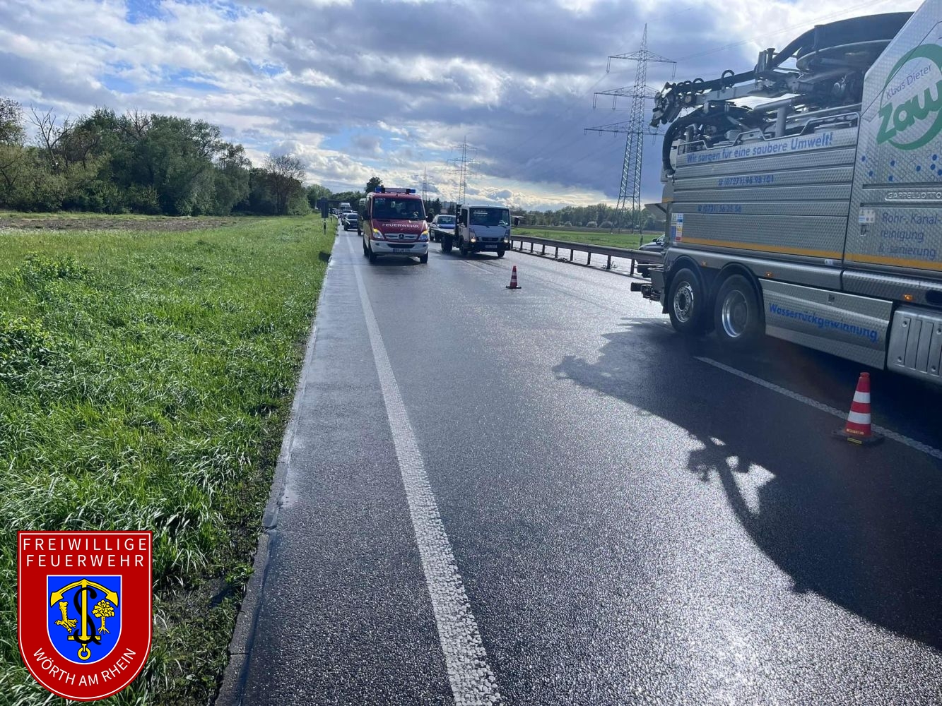 Beim Anbringen der „Ortseingang“-Schilder für den 1. Mai kamen zwei unserer Kameraden zufällig bei einem kurz zuvor passierten Verkehrsunfall auf der B9 Höhe Abfahrt Jockgrim vorbei. Aufgrund eines plötzlichen Regenschauers kam es auf der rechten Fahrspur zu einem Auffahrunfall mit zahlreichen Trümmern auf der Fahrbahn. Da es vor Ort keine verletzten Personen gab, sicherten die Einsatzkräfte die Unfallstelle bis zum Eintreffen der Polizei ab und unterstützten bei der Beseitigung der Trümmer.