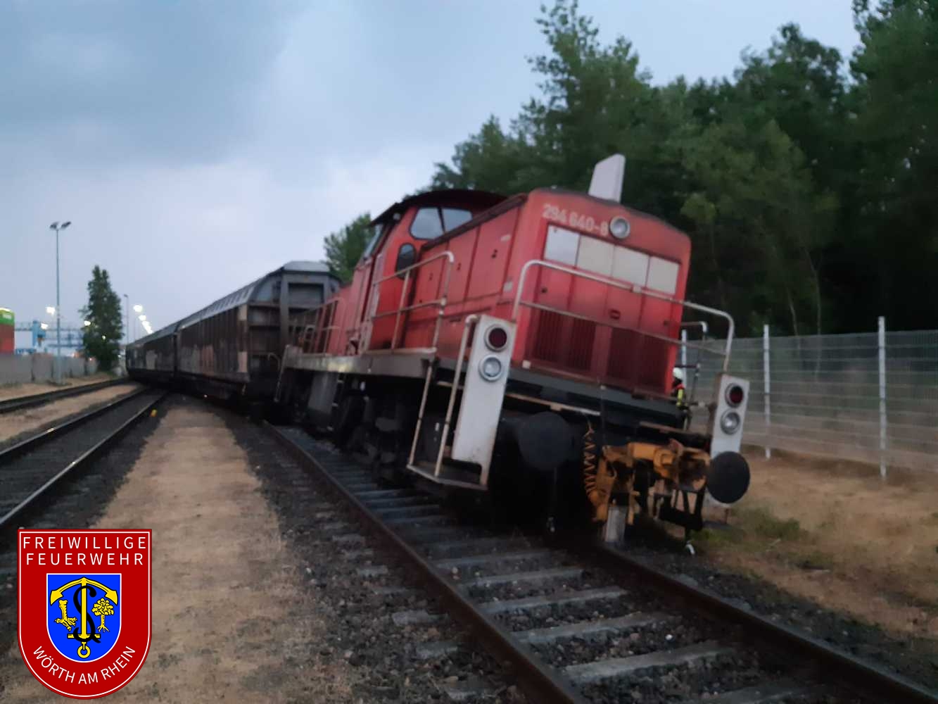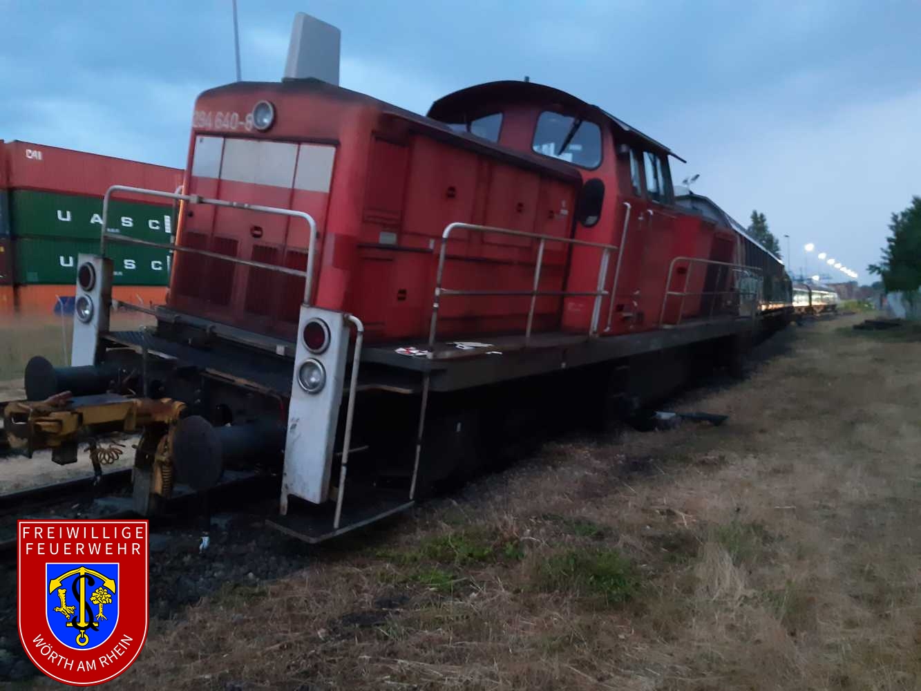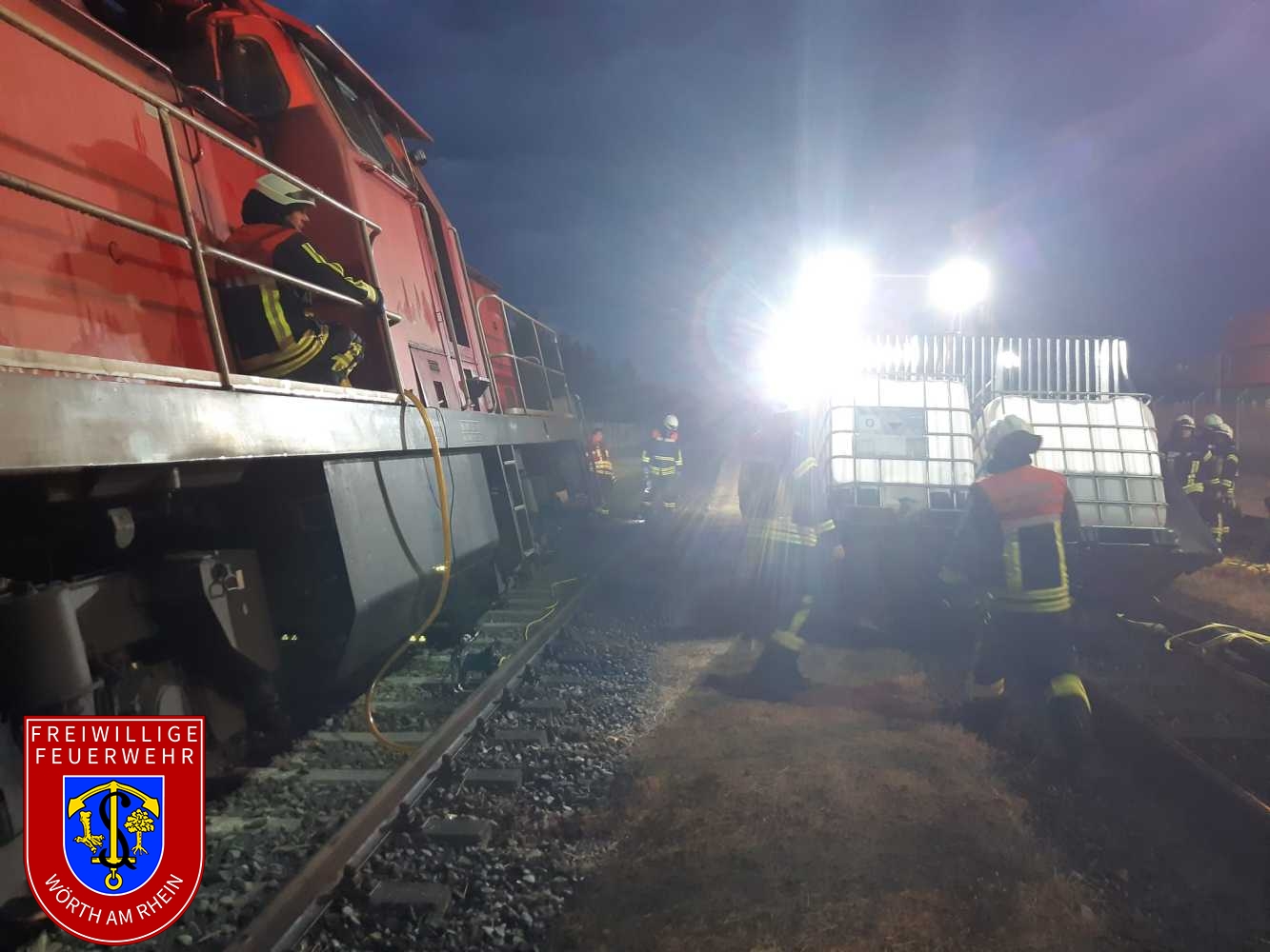 Gemeinsam mit unseren Kameraden aus Maximiliansau wurden wir in das Industriegebiet am Oberwald alarmiert. Dort war eine Diesellock entgleist. Dadurch nahm sie Schaden am Dieseltank.