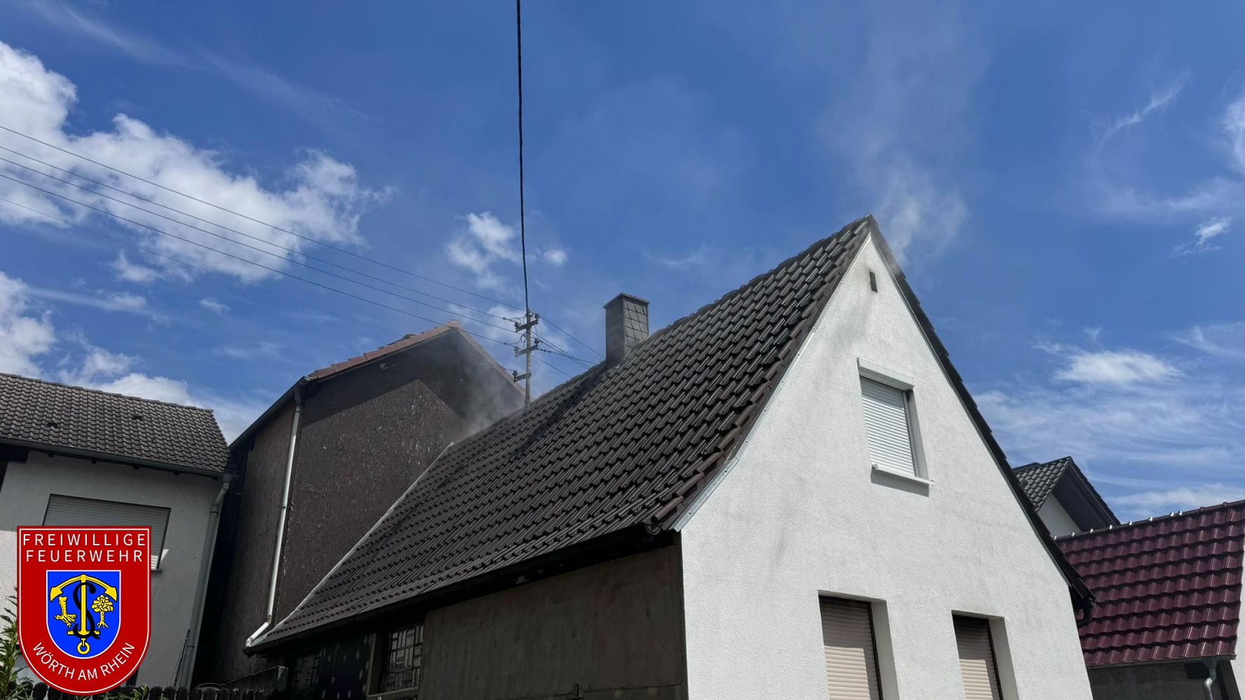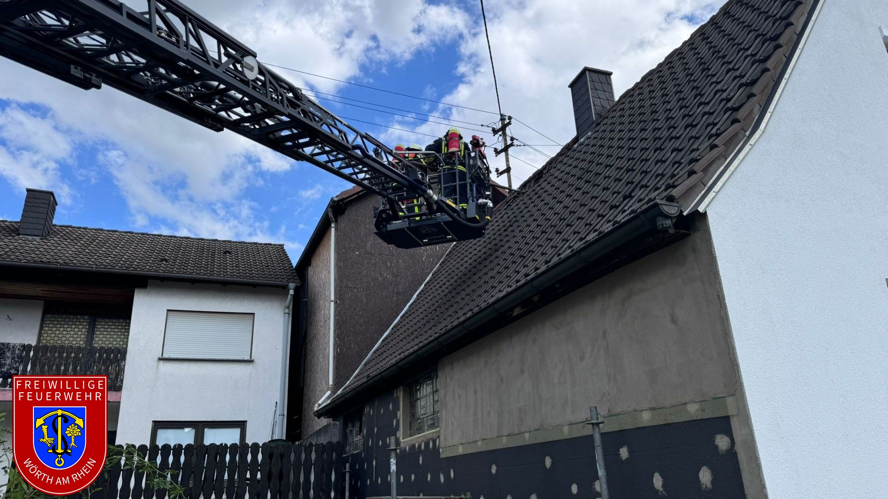 Wir wurden zur Unterstützung der Feuerwehr Hagenbach zu einem gemeldeten Dachstuhlbrand alarmiert. Bereits auf der Anfahrt war eine deutliche Rauchentwicklung sichtbar. Der Gebäudebrand war durch die erst-eintreffenden Kräfte aus Hagenbach zügig unter Kontrolle. Wir unterstützten mit Atemschutzgeräteträgern und mit der Drehleiter beim Öffnen des Daches, nachdem der Energieversorger das Gebäude stromlos geschaltet hatte.