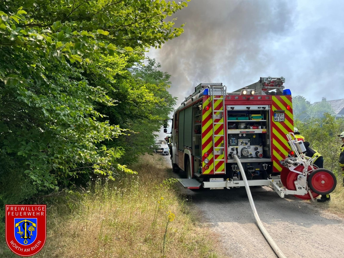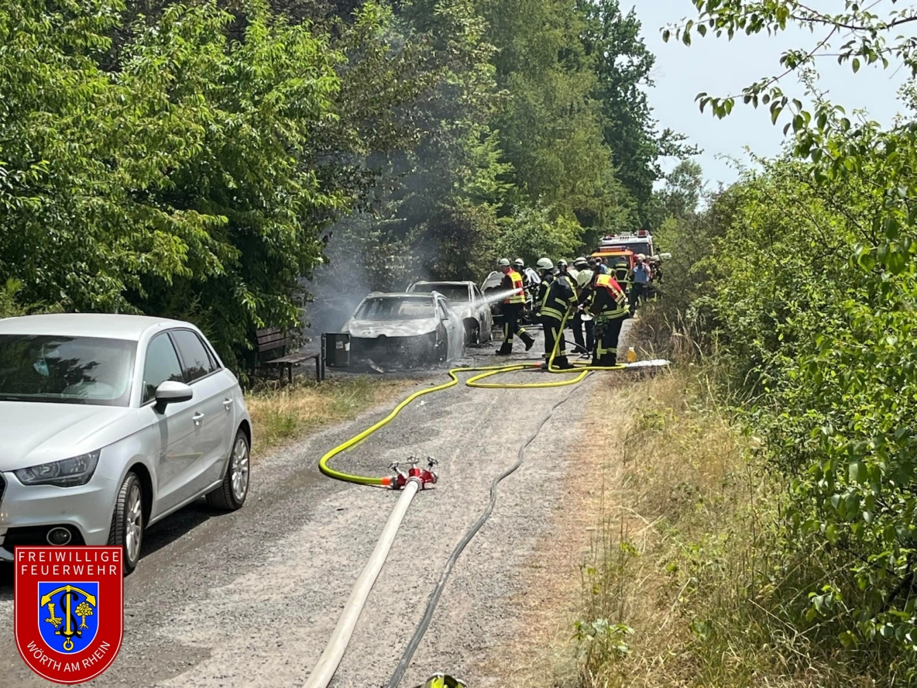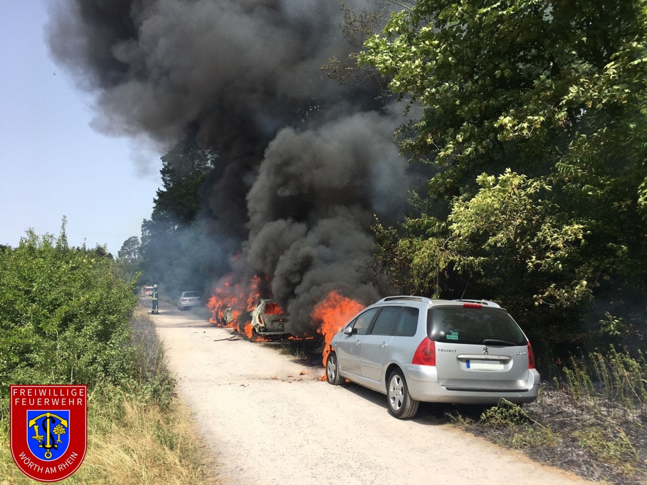 Wir wurden zu einem gemeldeten PKW-Brand im Bereich des Badeparks alarmiert. Bereits auf der Anfahrt konnten die Einsatzkräfte eine deutliche Rauchentwicklung feststellen. Aufgrund weiterer Anrufe erhöhte die Leitstelle das Alarmstichwort auf Wald- und Flächenbrand. Dadurch wurde automatisch ein weiterer Alarm für zusätzliche Einheiten innerhalb des Stadtgebiets sowie aus Kandel ausgelöst.