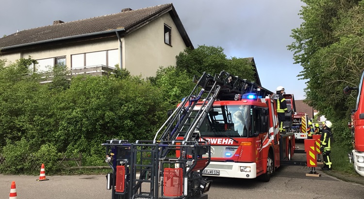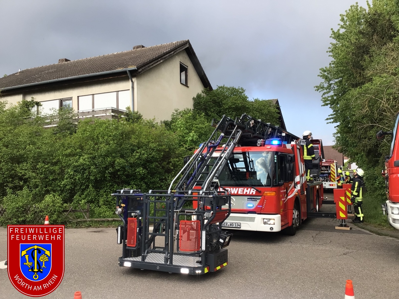 Wir wurden gemeinsam mit den Kameraden aus Büchelberg, Maximiliansau, Schaidt und Hagenbach zu einem Gebäudebrand in Maximiliansau alarmiert. Da bereits bei der Alarmierung von Flammenschein aus dem Dachgeschoss die Rede war, konnte von einem größeren Brandereignis ausgegangen werden.