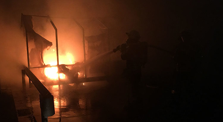 Wir wurden gemeinsam mit unseren Kameraden aus Maximiliansau zu einem Brand auf einem Betriebsgelände gerufen.