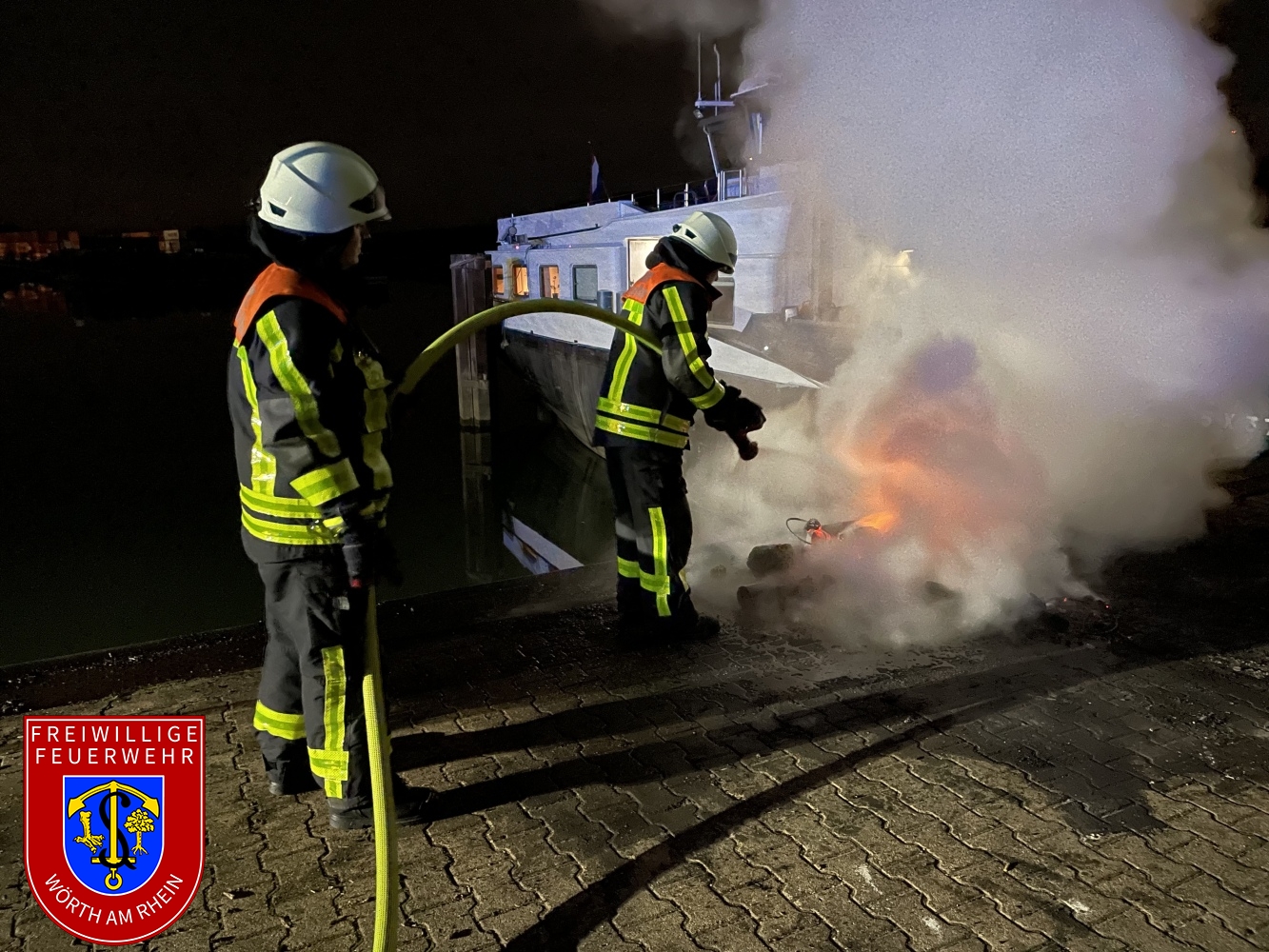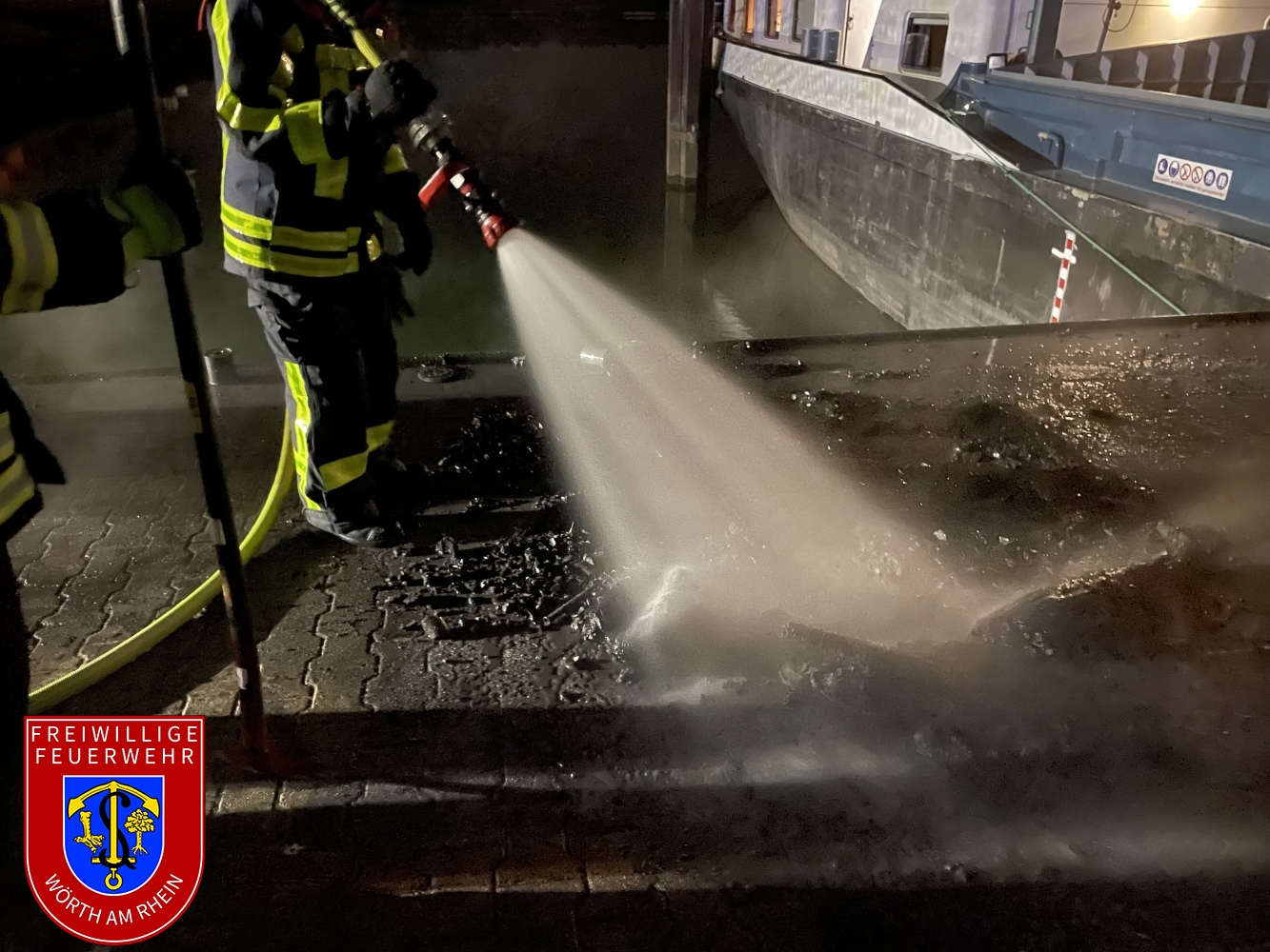 Wir wurden in der Nacht auf Sonntag zu einem Kleinbrand in das Hafengebiet Wörth alarmiert. Ein aufmerksamer Passant hatte Anzeichen eines Brandes gesichtet und folgerichtig den Notruf gewählt.