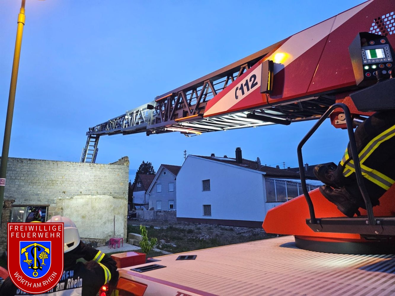 Wir wurden gemeinsam mit den Kameraden der Freiwilligen Feuerwehr Neuburg am Rhein zu einem Einsatz alarmiert. In Neuburg wurde unsere Drehleiter zur Unterstützung des Rettungsdiensts benötigt. Eine Person musste von einem Flachdach gerettet werden.