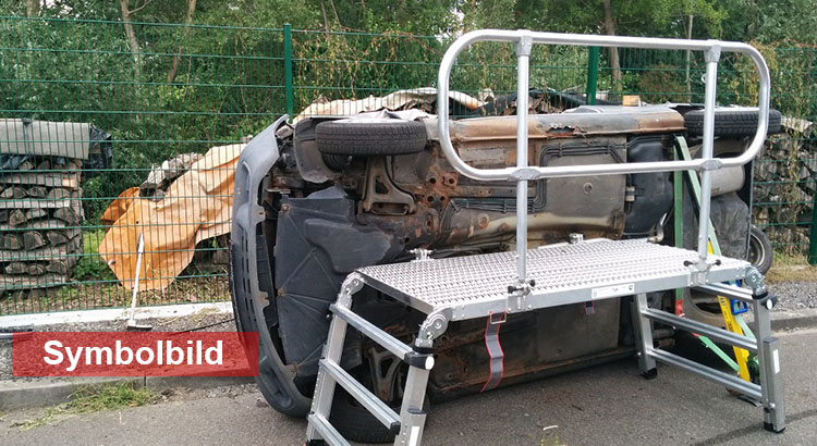 Ein Fahrzeug kam aus unbekannten Gründen von der Fahrbahn ab, überschlug sich im Straßengraben und blieb in Seitenlage liegen. Glück im Unglück hatte die Fahrerin, denn sie war „nur“ eingeschlossen und nicht eingeklemmt.