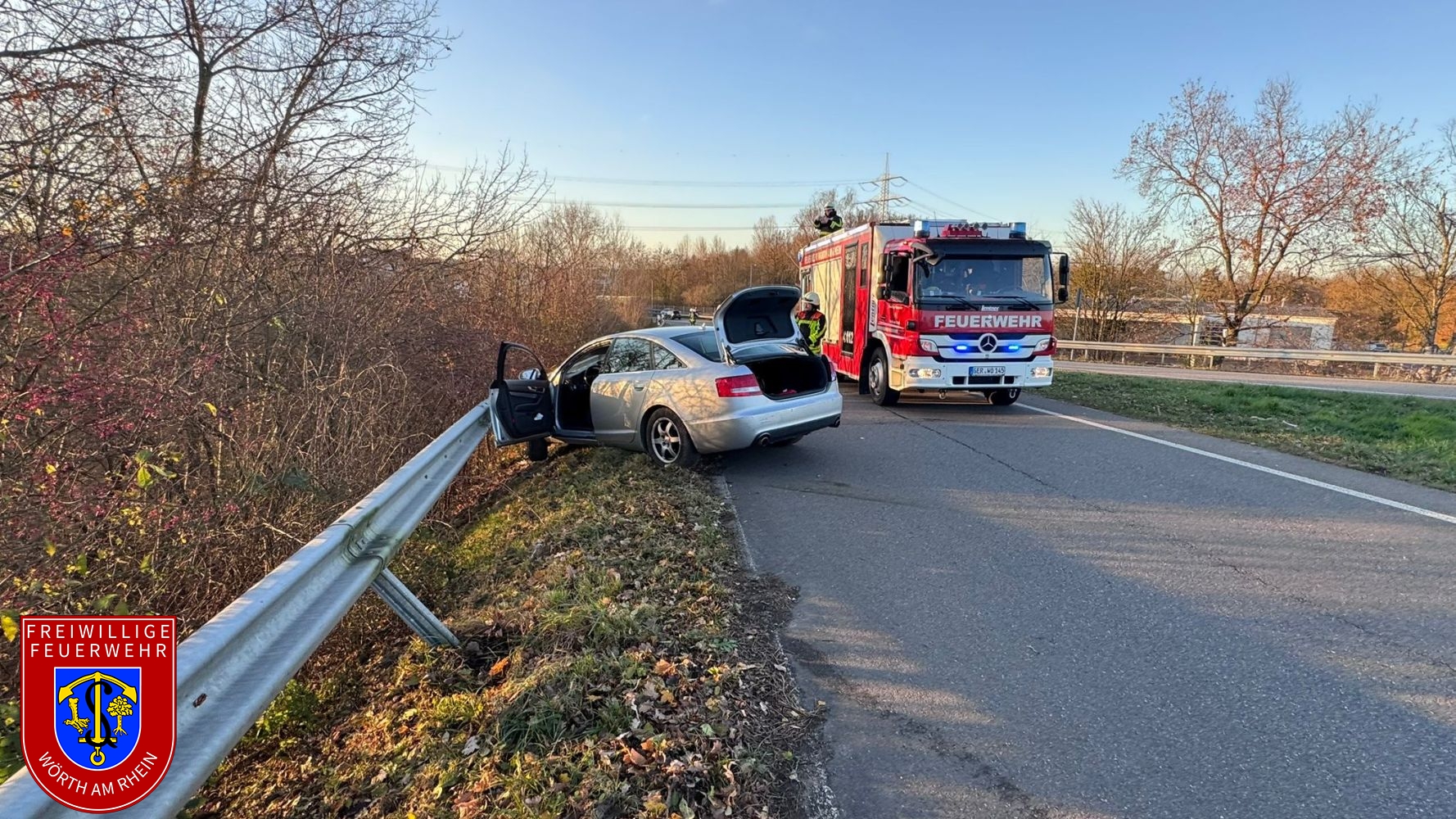 Auf der Anfahrt zum Einsatz in Maximiliansau kam eins unserer Löschfahrzeuge zu einem Verkehrsunfall, der sich nur wenige Augenblicke vorher ereignet hatte. Das Fahrzeug brach die Alarmfahr ab und übernahm die Absicherung der Einsatzstelle, stellte den Brandschutz sicher, sicherte das Fahrzeug vorm Abstürzen. Glücklicherweise wurde niemand verletzt. Die Einsatzstelle wurde anschließend an die Polizei übergeben.