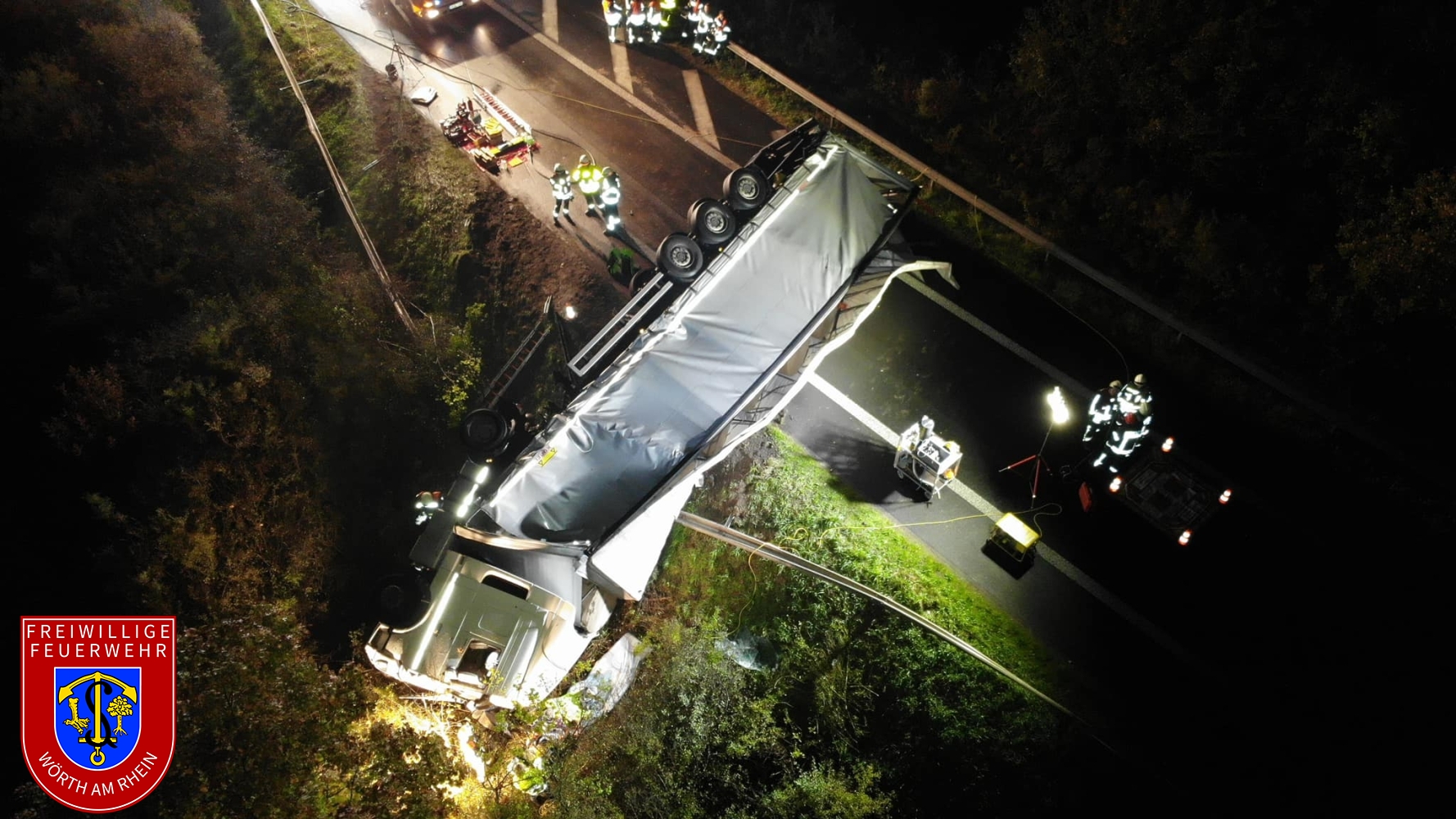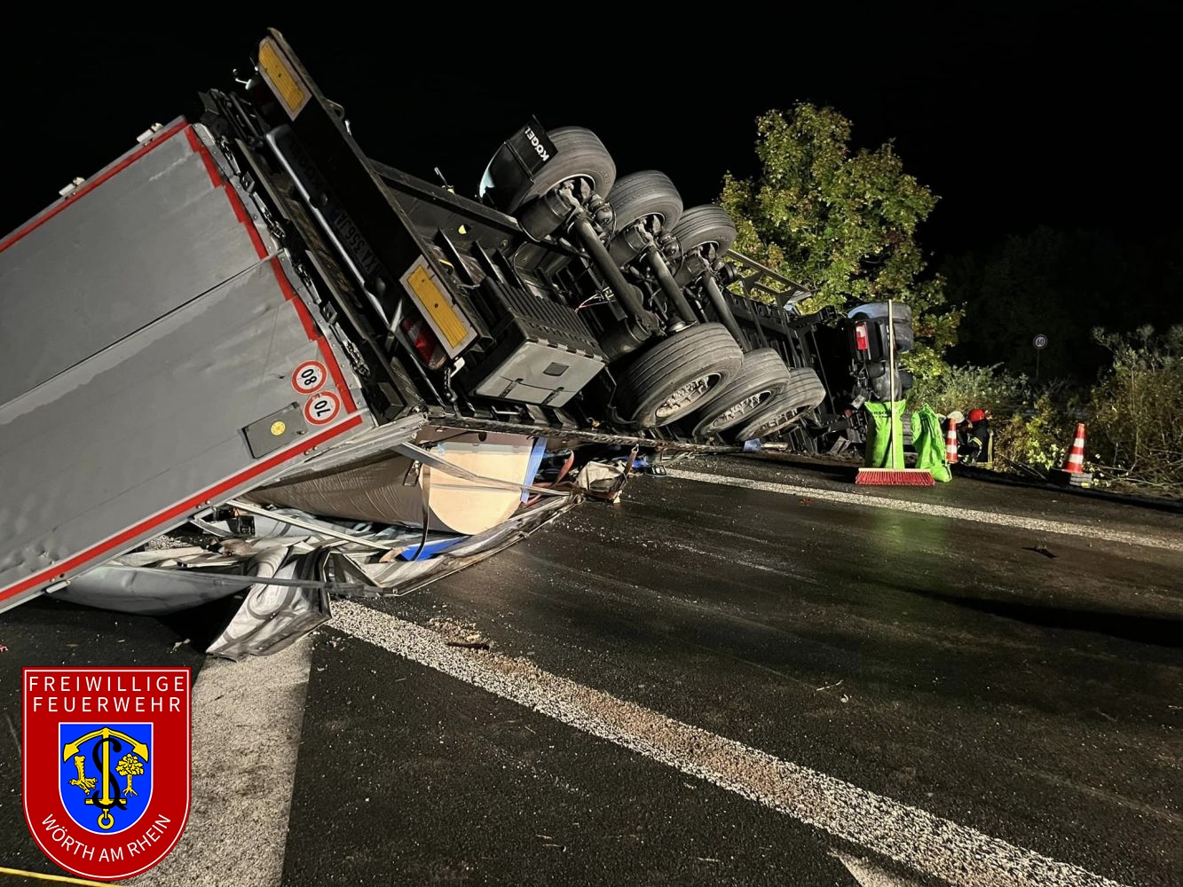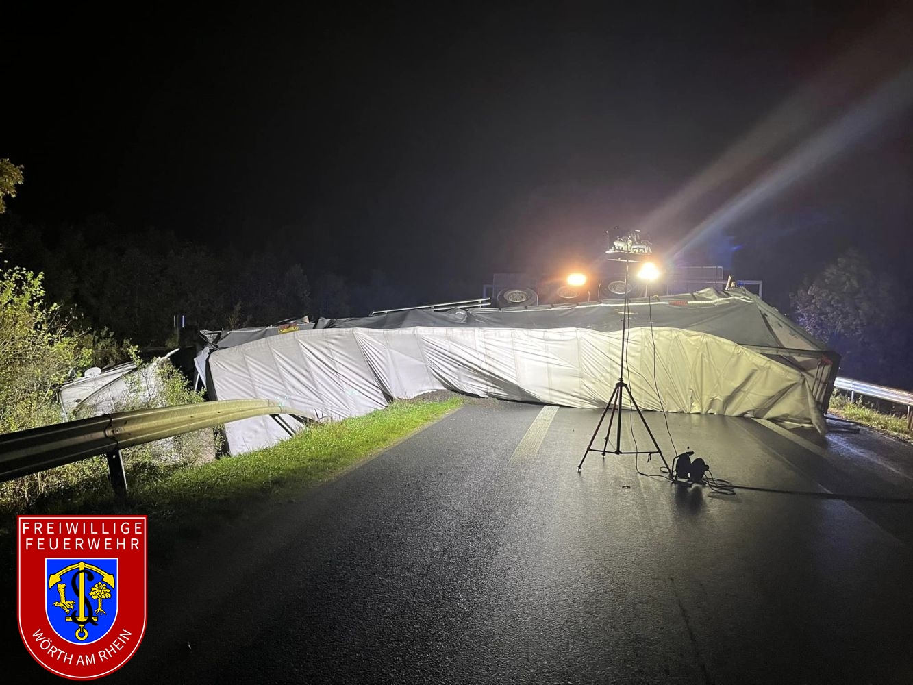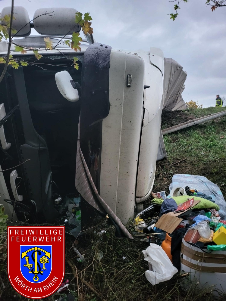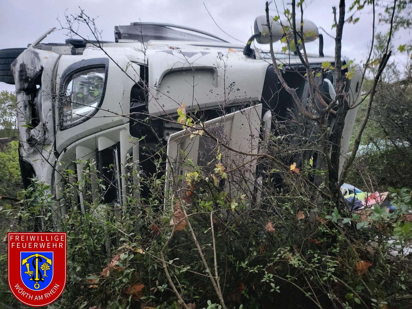 Zusammen mit den Kameraden aus Maximiliansau wurden wir zu einem schweren Verkehrsunfall auf der B9 und dem Zubringer der B10 in Fahrtrichtung Karlsruhe alarmiert. Ein Sattelzug kam aus ungeklärter Ursache von der Fahrbahn ab und stürzte um. Der im Fahrerhaus eingeschlossene Fahrer wurde durch uns befreit. Wir sicherten die Brandstelle gegen den Verkehr und stellten den Brandschutz sicher. Außerdem wurden auslaufende Betriebsstoffe aufgenommen.