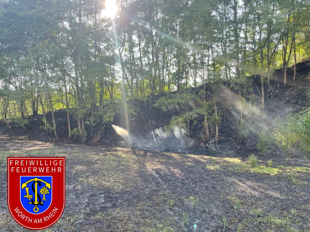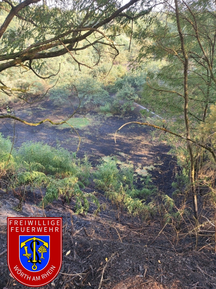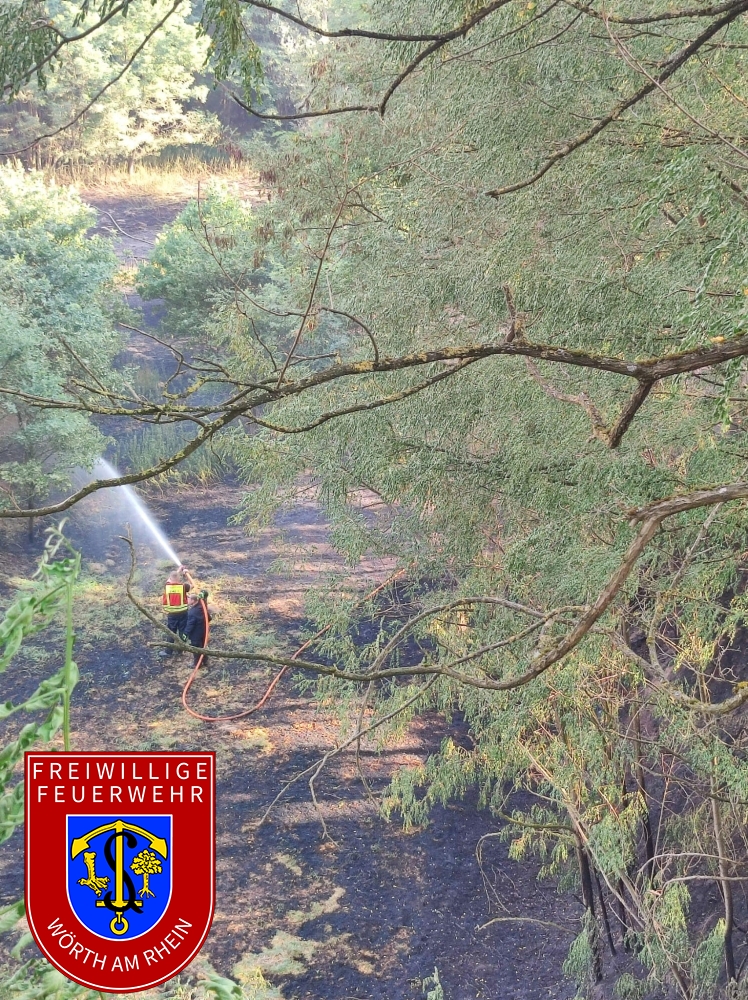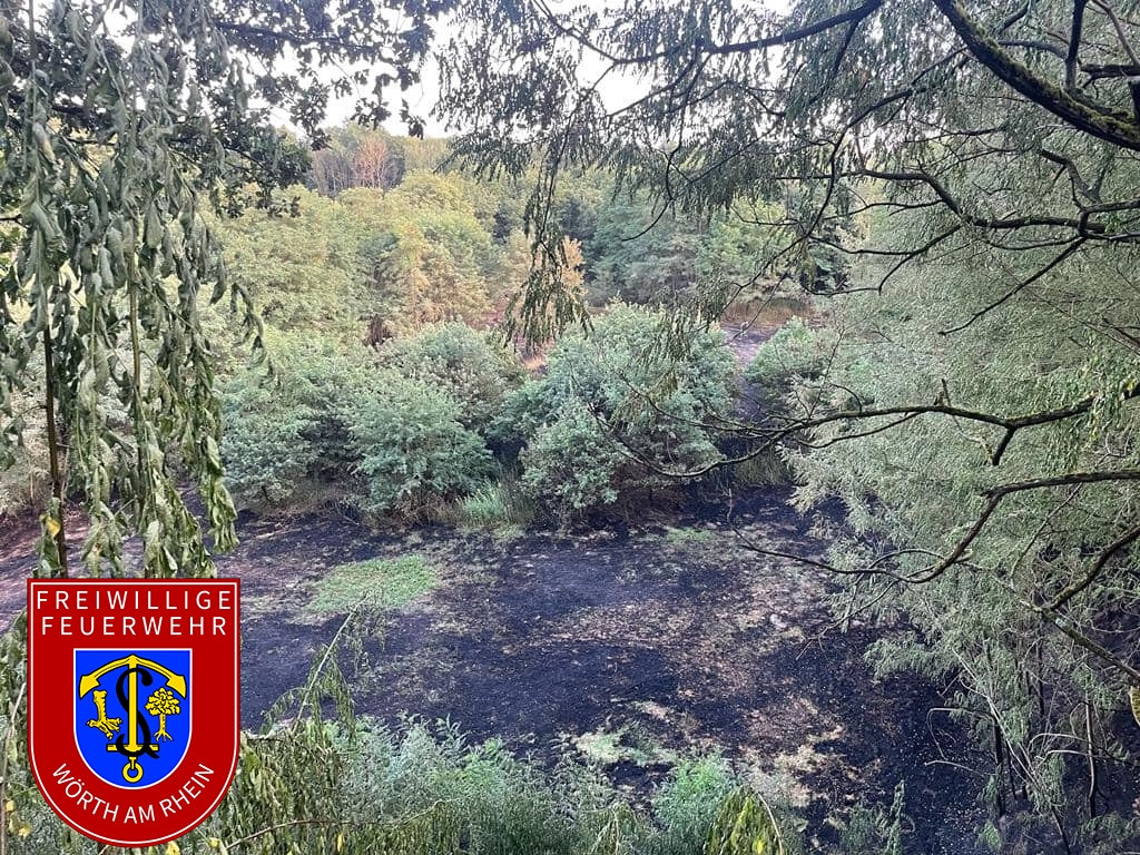 Am Montagnachmittag entdeckte der Rettungshubschrauber Christoph 43 bei einem Überflug eine Rauchentwicklung im Bienwald zwischen Berg und Hagenbach. Die integrierte Leitstelle Landau alarmierte daraufhin gemäß Alarm- und Ausrückeordnung (AAO) um 16:22 Uhr die Feuerwehren der VG Hagenbach, die Feuerwehr Wörth und Kandel. In Zeiten mit hohem Waldbrandbrandgefahrenindex (WBI) stellt diese Sonder-AAO sicher, dass frühzeitig Einsatzkräfte und taktische Mittel an der Brandstelle eintreffen. Da die genaue Brandstelle zunächst nicht klar war, nutze der stellv. BKI den Wasserturm von Berg als Aussichtsplattform und lotste die ersten Einsatzkräfte zeitnah zum Brandherd. Das ausgedehnte Bodenfeuer brannte zu diesem Zeitpunkt auf einer Fläche von etwa 40.000 Quadratmeter. Nachdem das Ausmaß der Lage klar war, alarmierte der Einsatzleiter den Katastrophenschutzzug des Landkreises Germersheim, bestehend aus den Modulen Brandbekämpfung, Wasserförderung und Wassertransport. Der Katastrophenschutzzug wurde Anfang des Jahres ins Leben gerufen und ermöglicht dem zuständigen Einsatzleiter zeitnah Einsatzkräfte und taktische Mittel zur Einsatzstelle zu bestellen und gleichzeitig den örtlichen Brandschutz der Gemeinden sicherzustellen. Die Einsatzkräfte bekämpften, eingeteilt in zwei Einsatzabschnitte, das Feuer und begrenzten den Schaden weitestgehend auf das vorgefundene Ausmaß. Auch eine Ausbreitung auf die hoch gewachsene Vegetation, wie etwa Baumkronen, konnte durch das rasche Eingreifen verhindert werden. Zur Lagedarstellung in dem unwegsamen Gelände nahe dem Kalksandsteinwerk unterstützte die Feuerwehr Wörth und das DLRG mit dem Einsatz von bildgebenden Drohnen. Auch die Forstrevierleiter unterstützten mit ihrer Ortskenntnis und technischen Mitteln. Die SEG Sanitätsbereitschaft stellte die medizinische Absicherung der Einsatzkräfte sicher. Bürgermeisterin der Verbandgemeinde Hagenbach Iris Fleisch, machte sich vor Ort ein Bild. Insgesamt waren 160 Kräfte im Einsatz, wovon 100 Einsatzkräfte durch den Katastrophenschutzzug bereitgestellt wurden.
